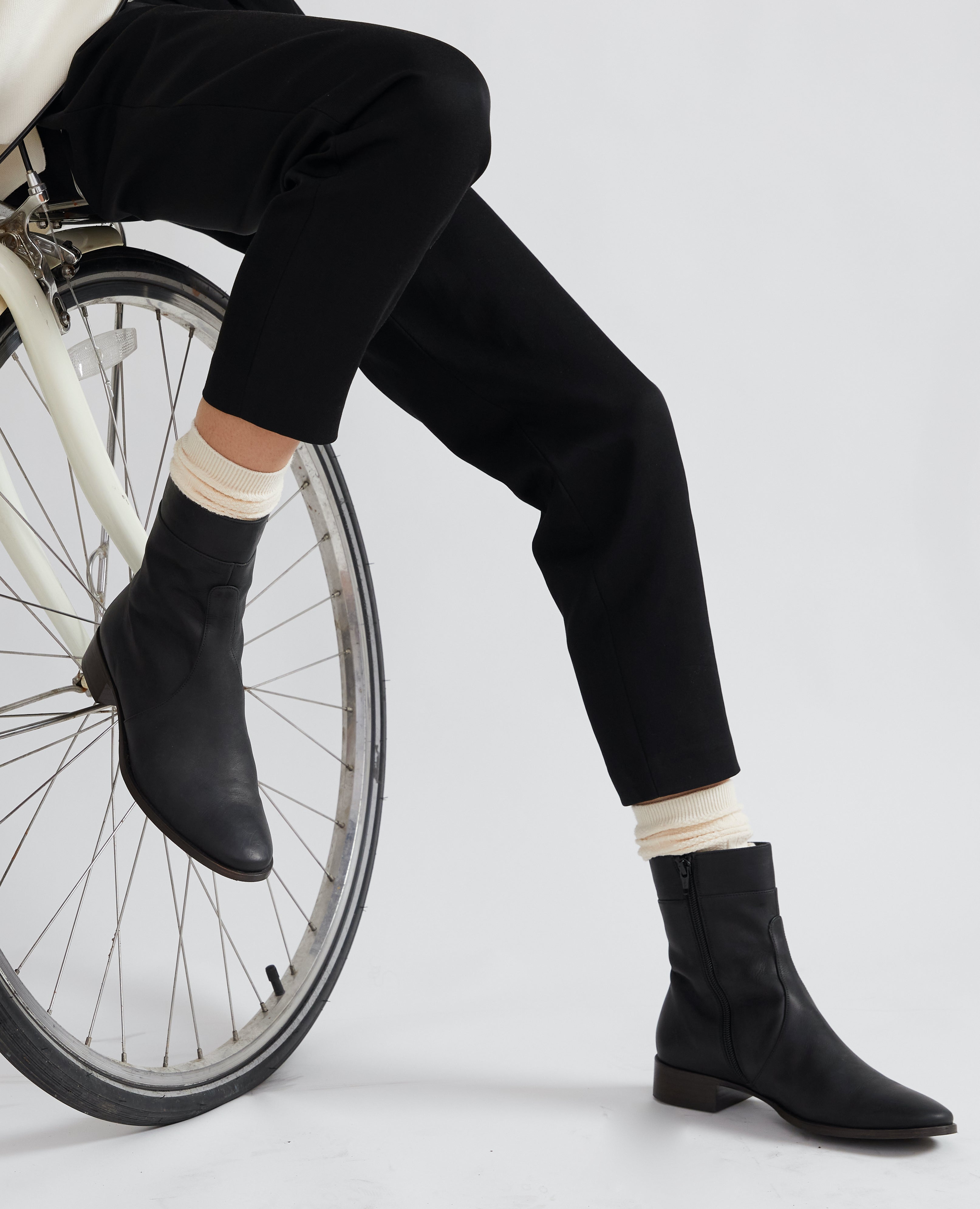 Clean lines keep it modern while the flat heel meets your all-day needs in classic black leather. Inside zip. Leather sole.Italian leather Heel Height: 1 inches Leather Sole Made In Spain