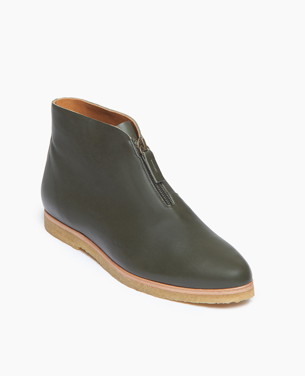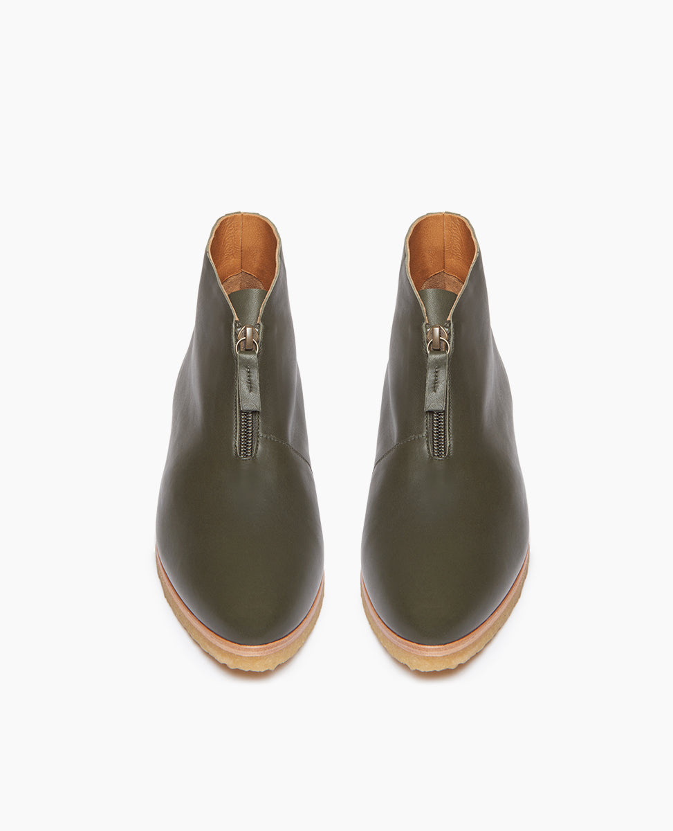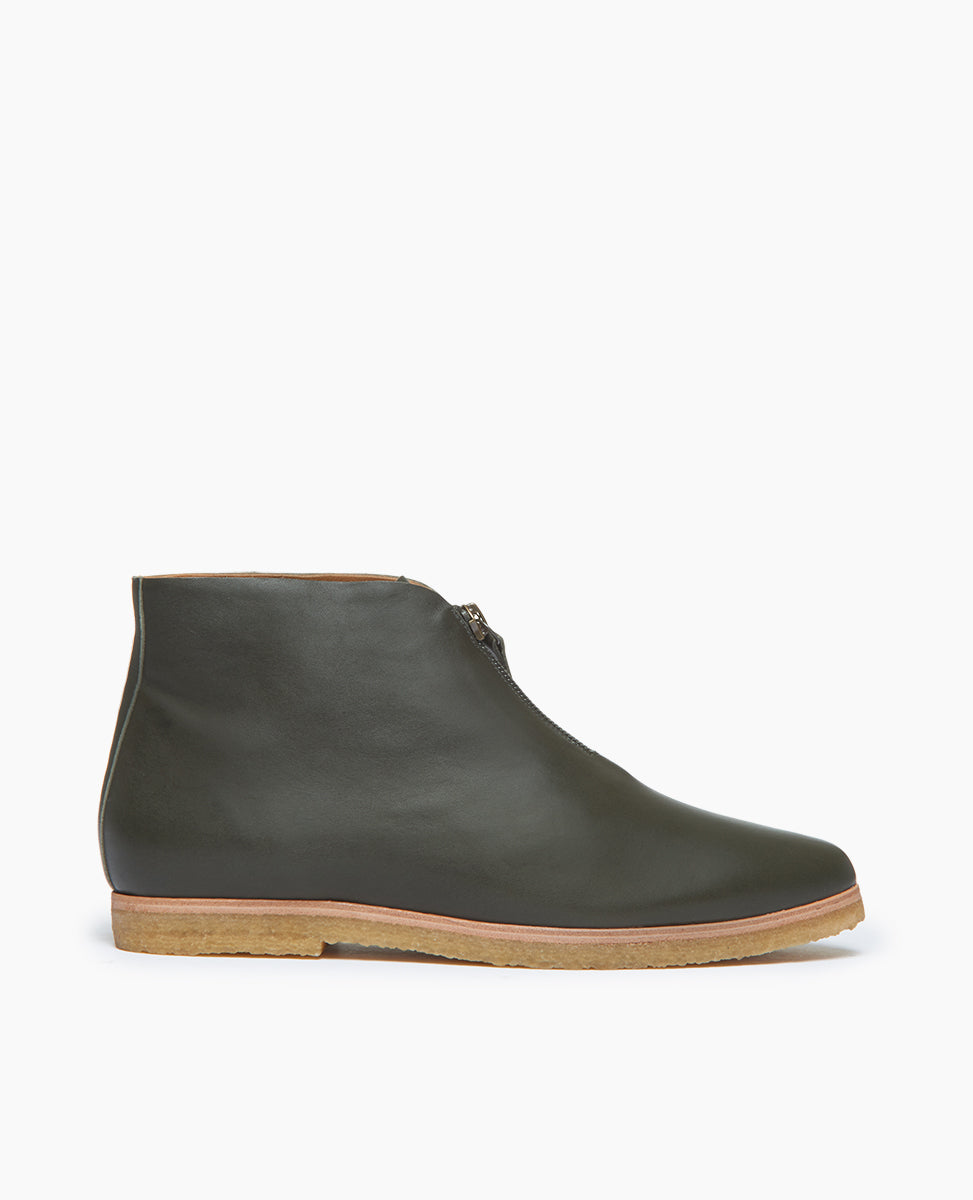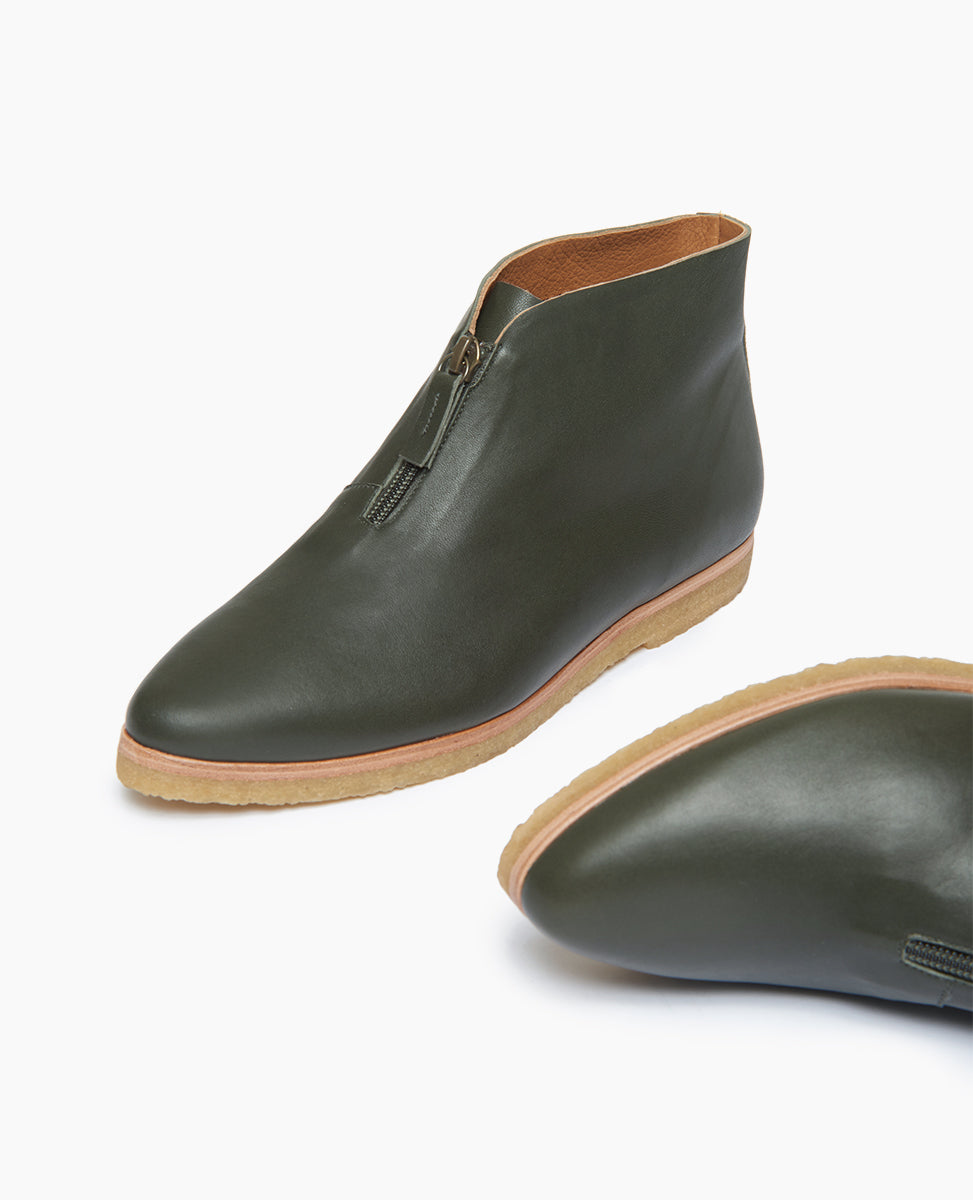 Unique and casual bootie with a gently pointed toe and front zip on a soft, natural crepe sole. FIT: The Pickle Boot?has a slim fit and is best suited for narrow to medium-width feet, if you don't have a narrow foot we recommend going up 1/2 a size. See our size guide to find your Coclico size.