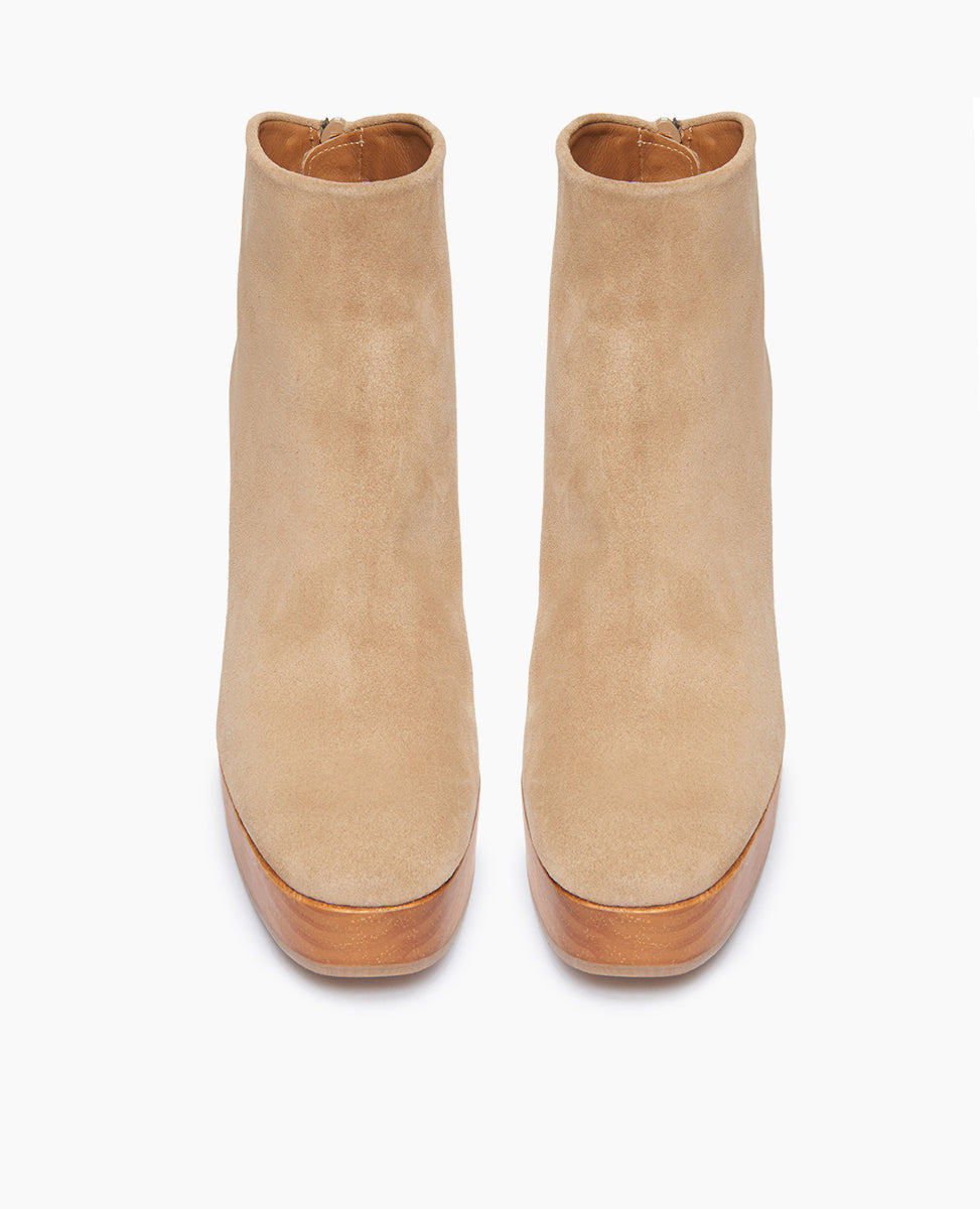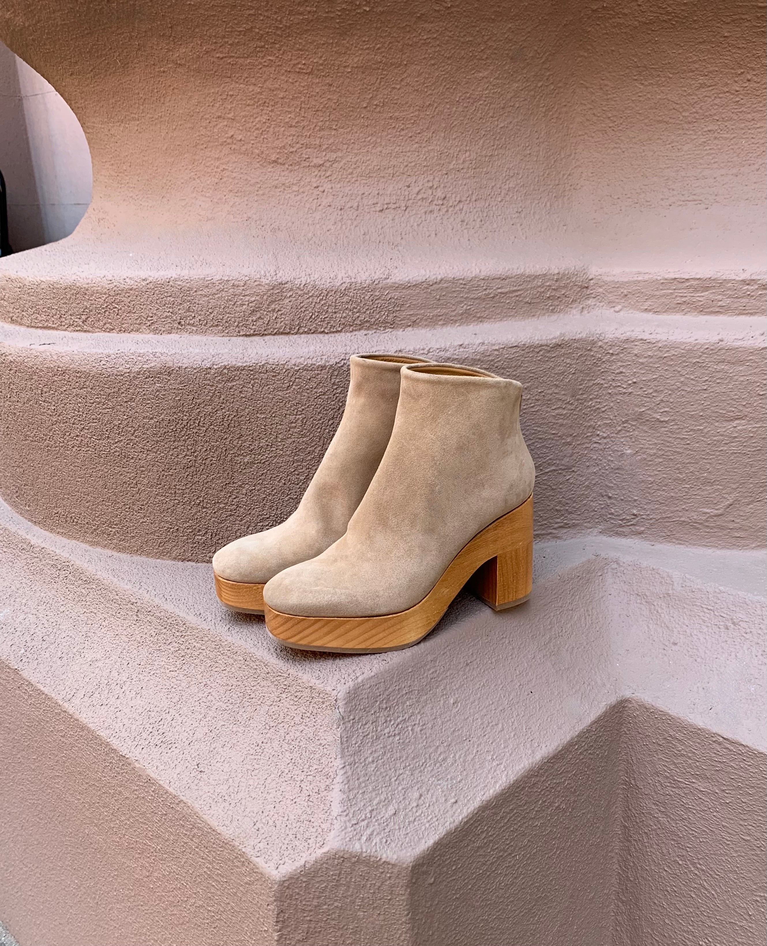 Italian?Suede Heel Height: 3.5" inches with a 1" platform Leather Sole Made In Spain