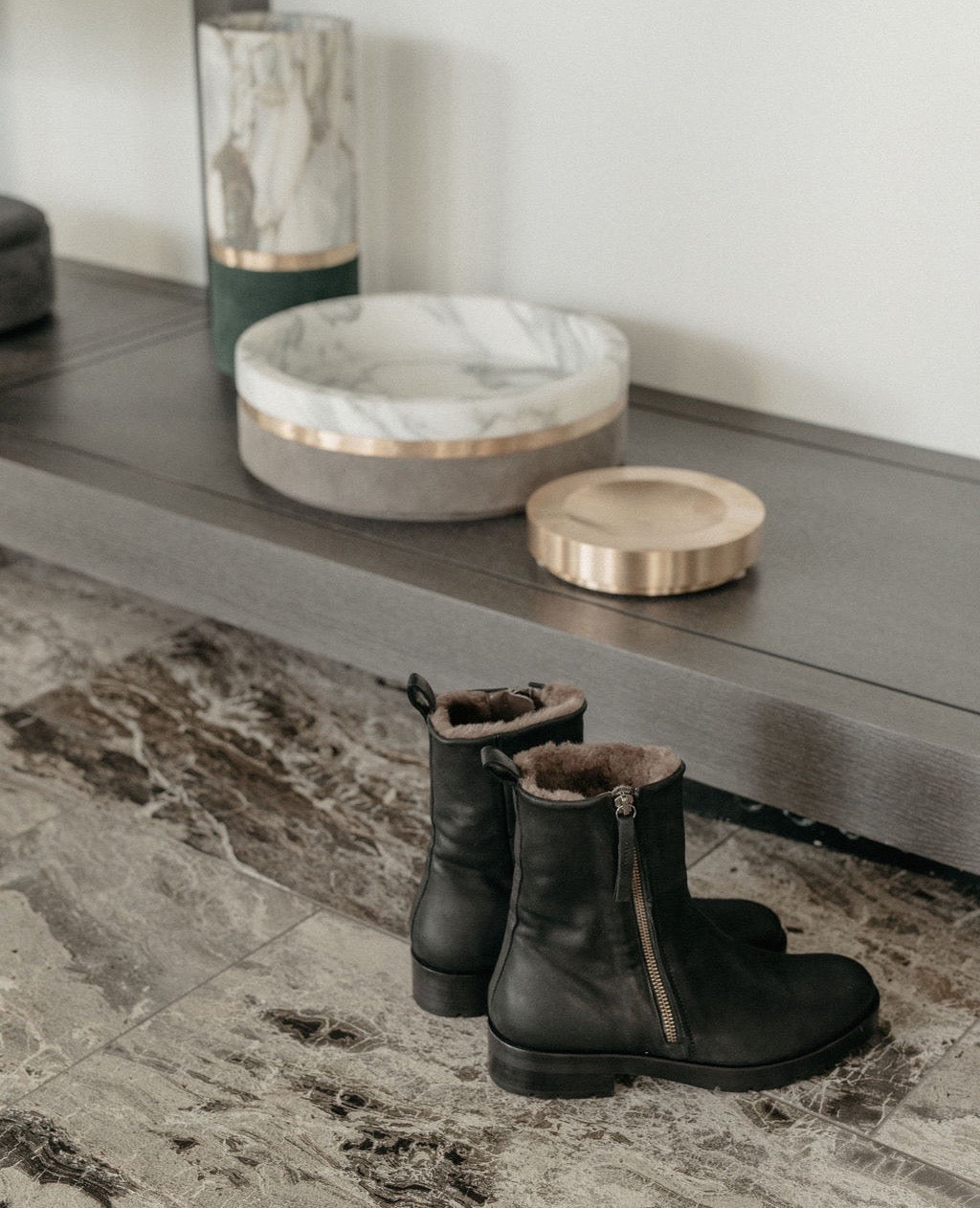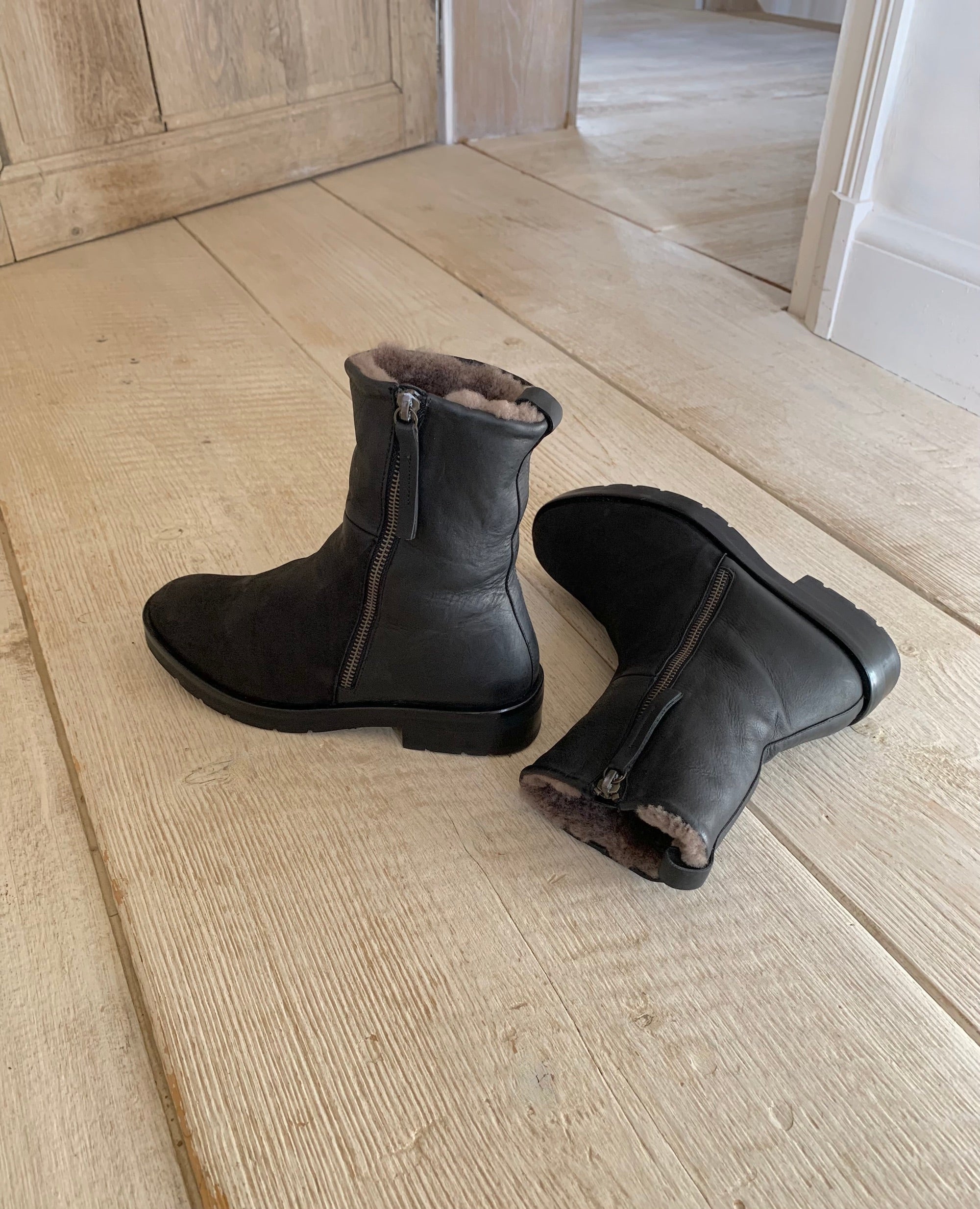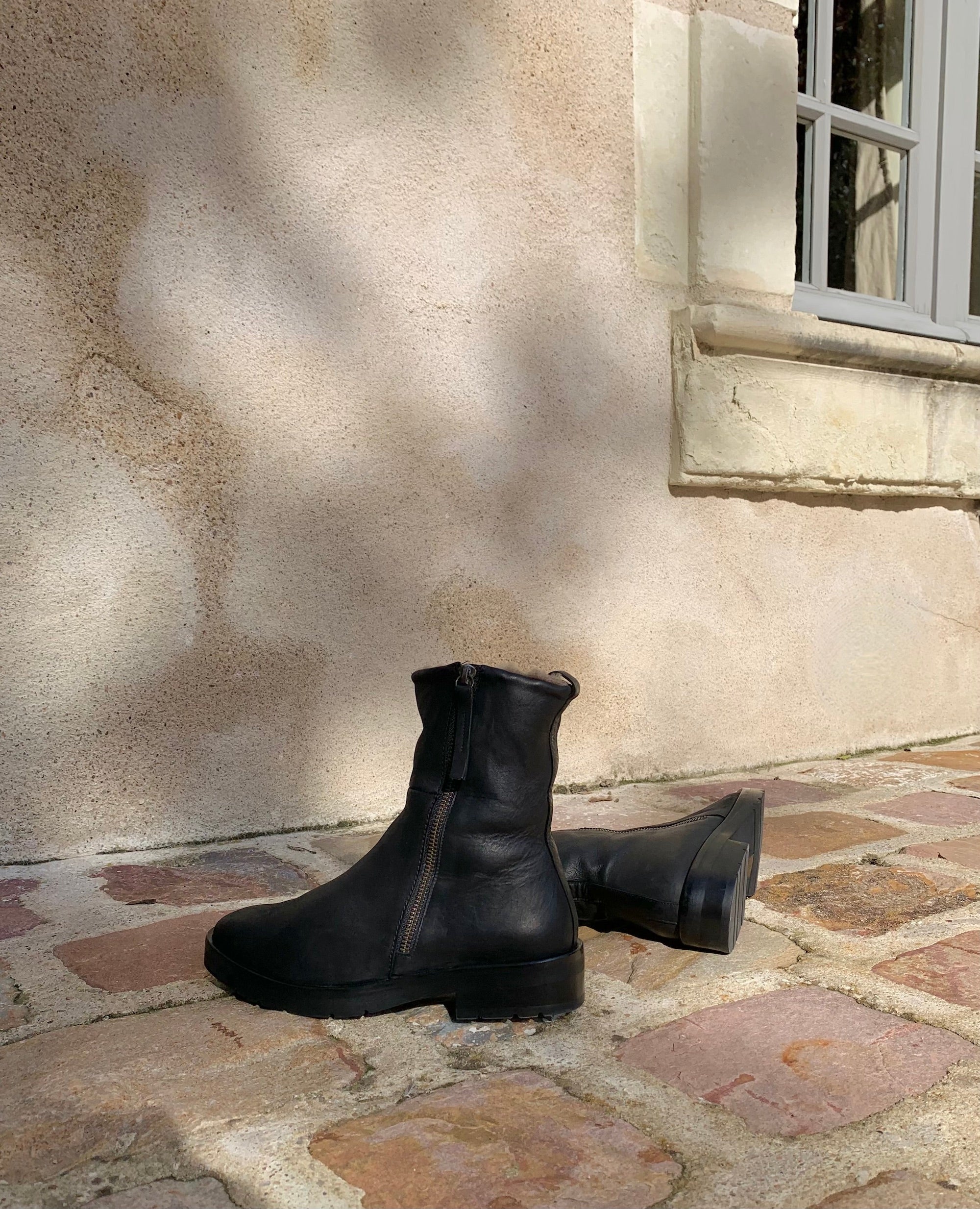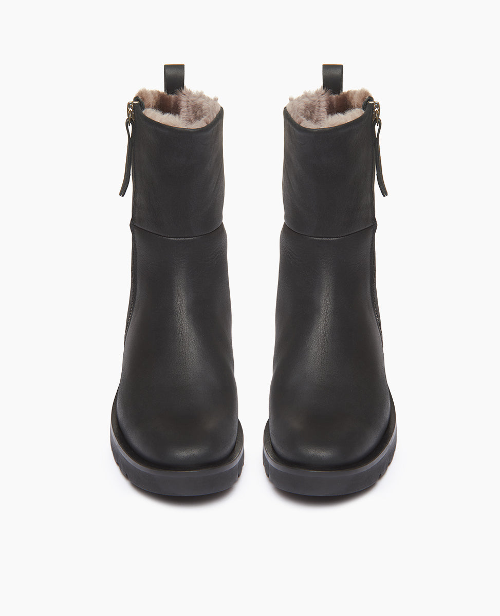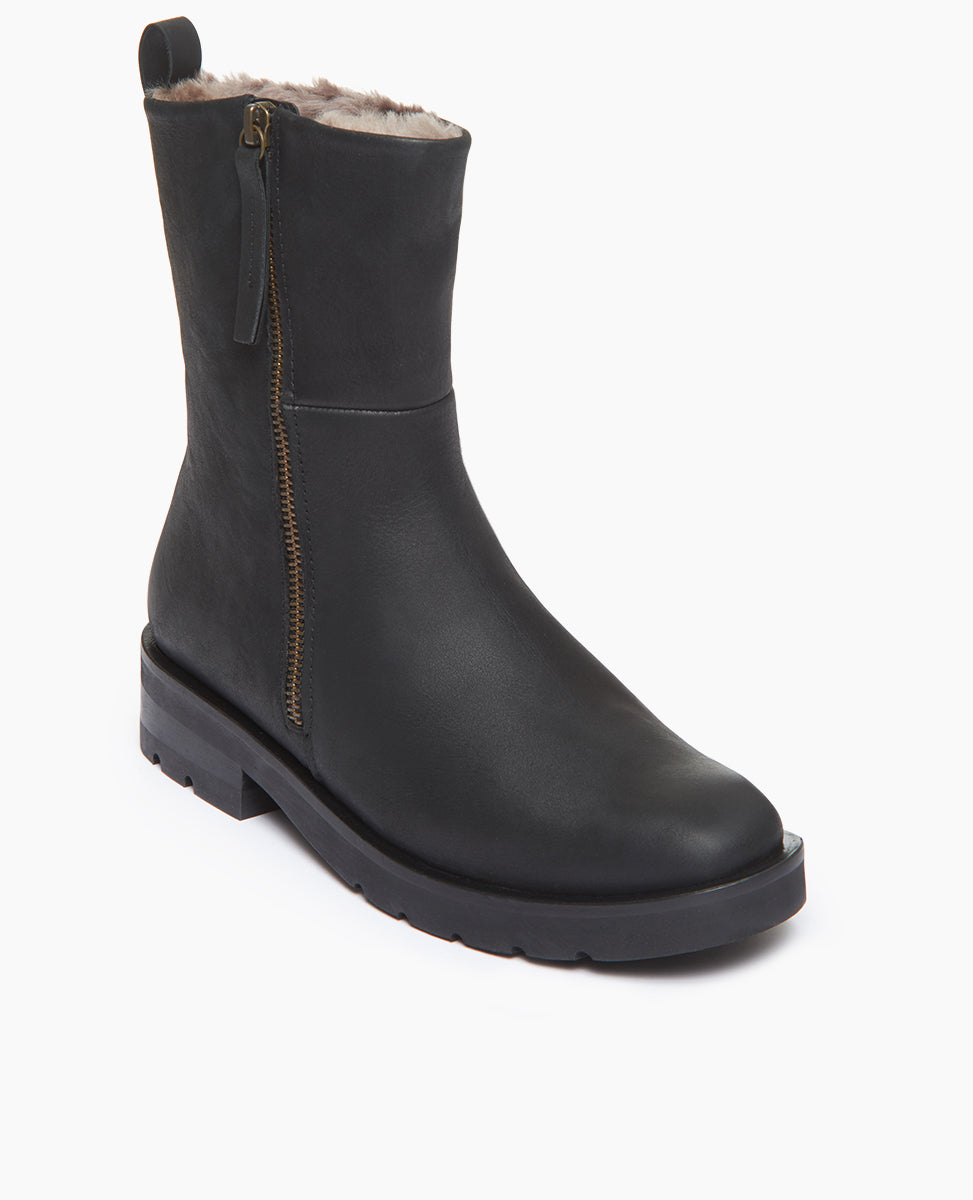 Our best-selling lug-soled, moto boot is updated this season to be better than ever. The Darbette Boot is now the Durum Boot, it features an updated lug sole, but the same upper design that you know and love. The perfect winter boot, the Durum is an elevated (and cozy!) moto boot featuring an outside zip closure and a full shearling-lined interior. Please size up to accommodate for the shearling lining. FIT: Because the Durum Boot is fully shearling-lined we strongly recommend sizing up half a size. Please pay heed to this advice! See our size chart for true size conversions, and go up a half size.