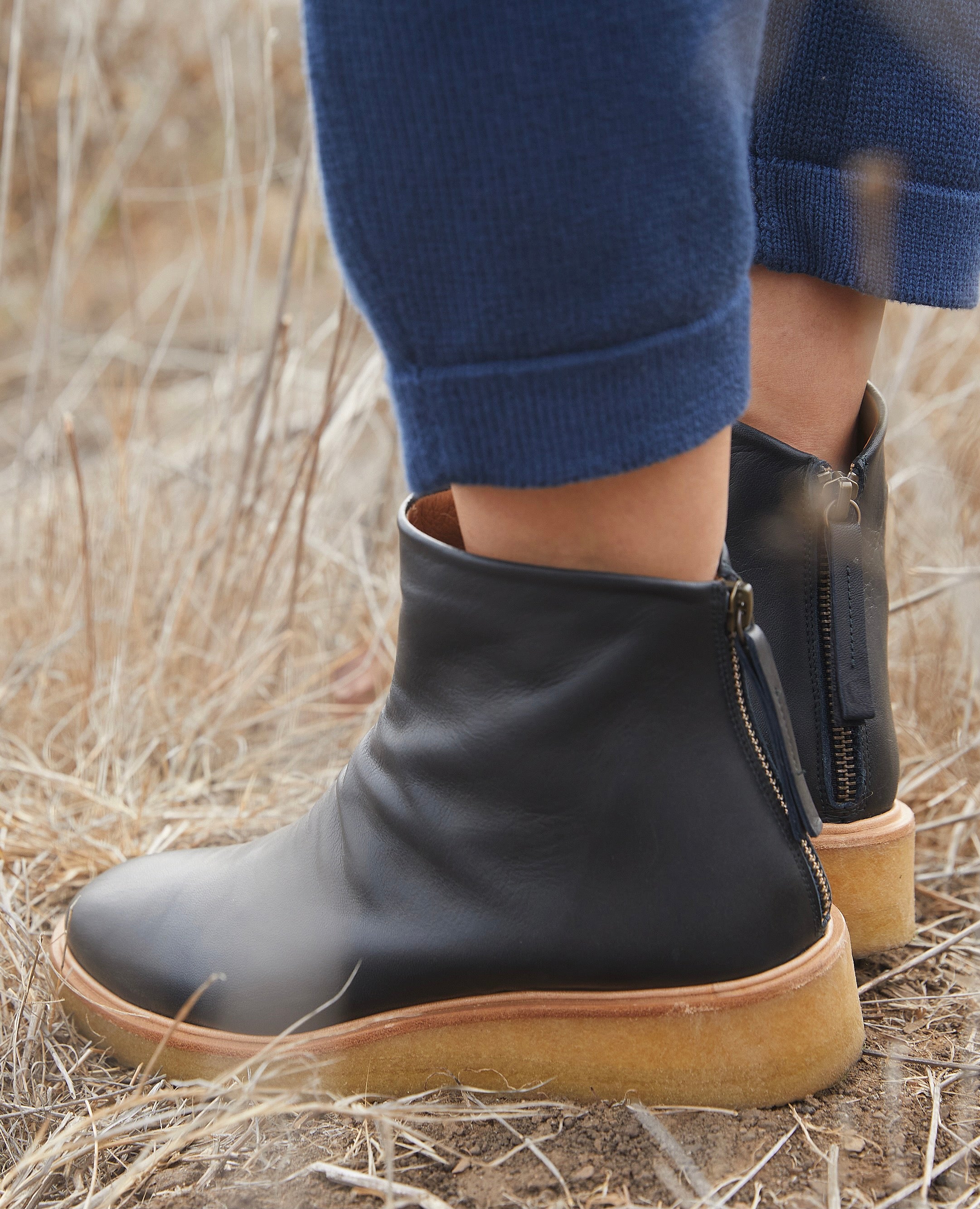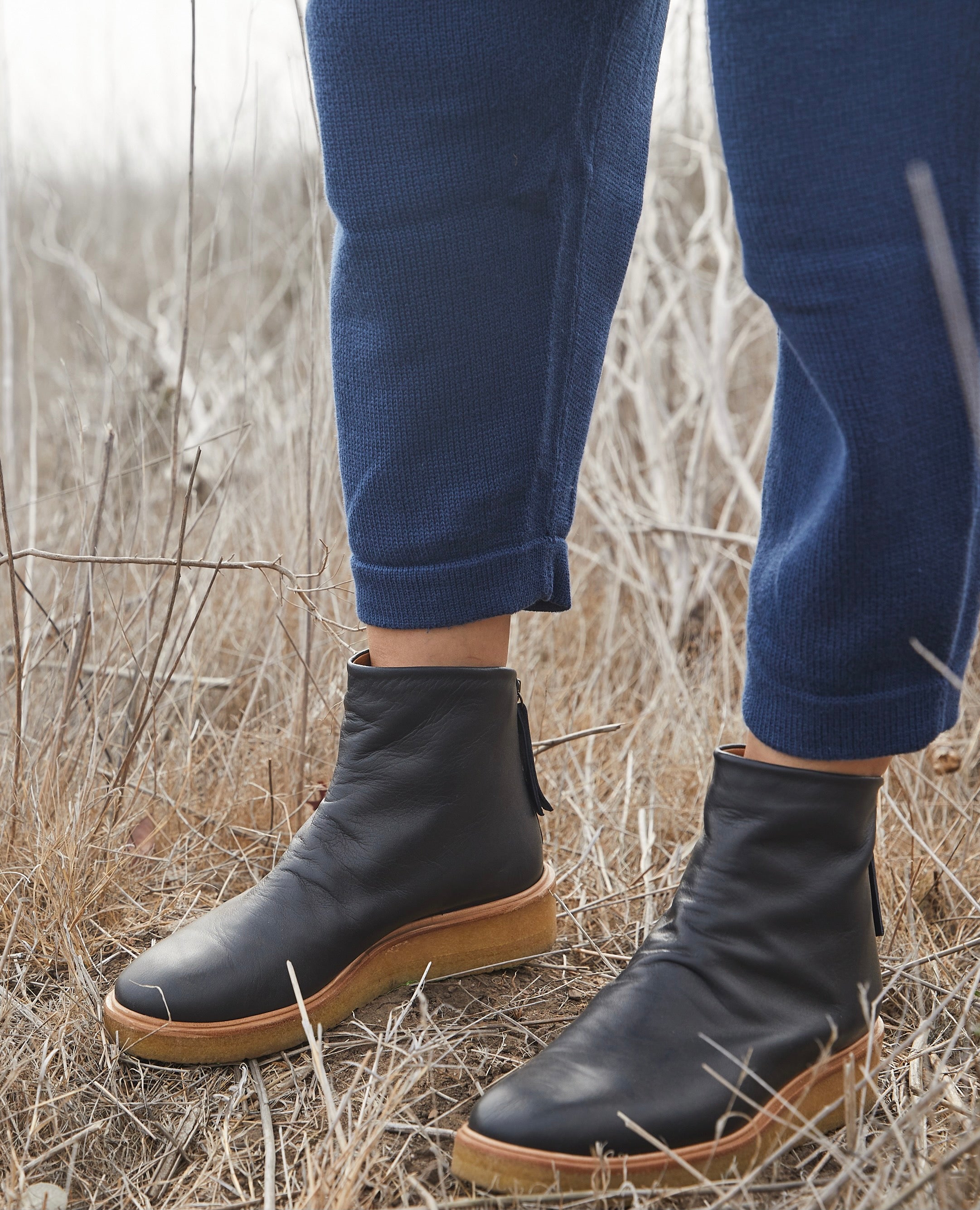 "Deep Sea" is a?rich blue-black in appearance,?it can?look nearly black in some lights and more like a navy in others. We love this leather color for its outfitting versatility and its fluctuating nature.?FIT: The Hop Boot runs true to size. See our size guide to find your Coclico size.