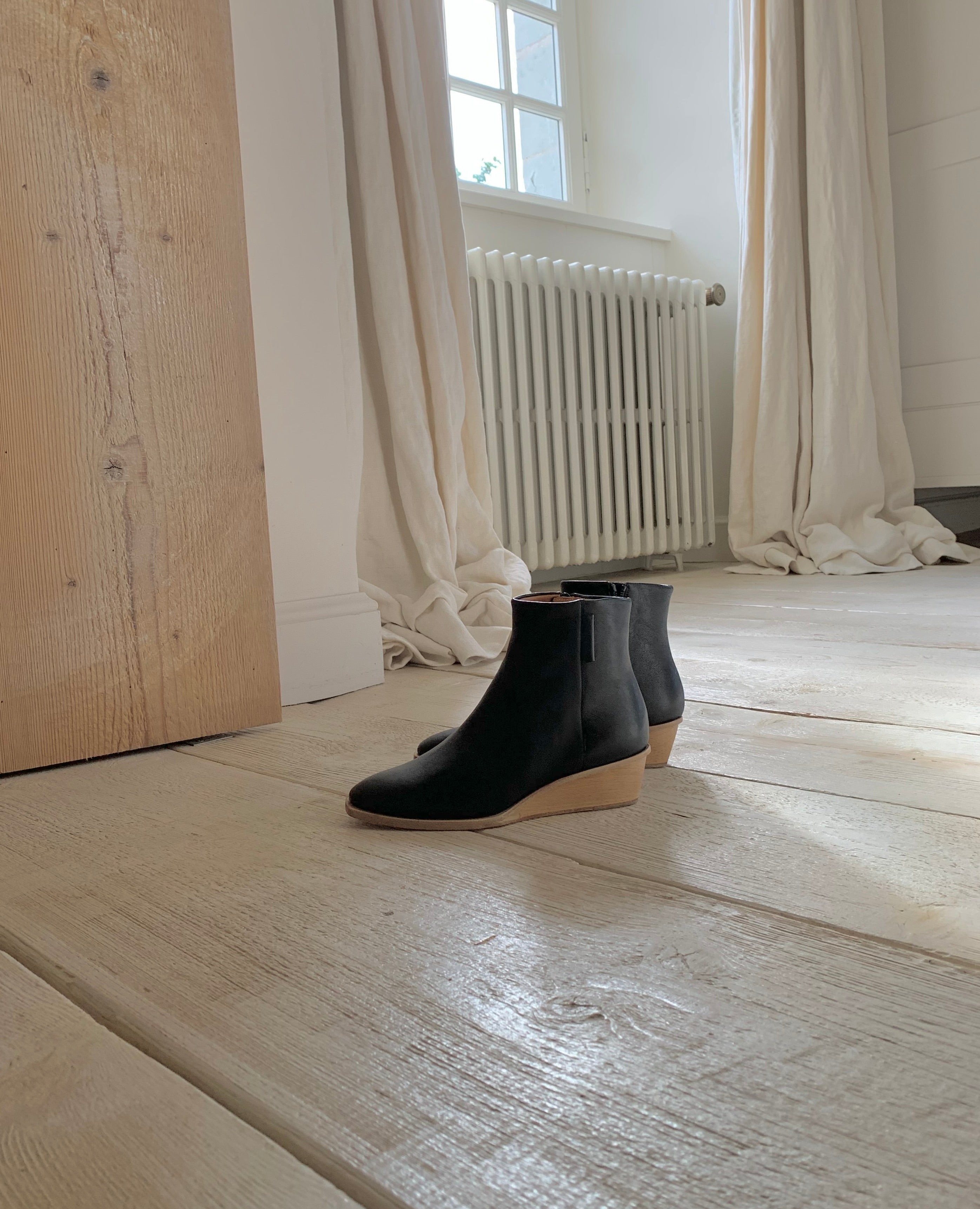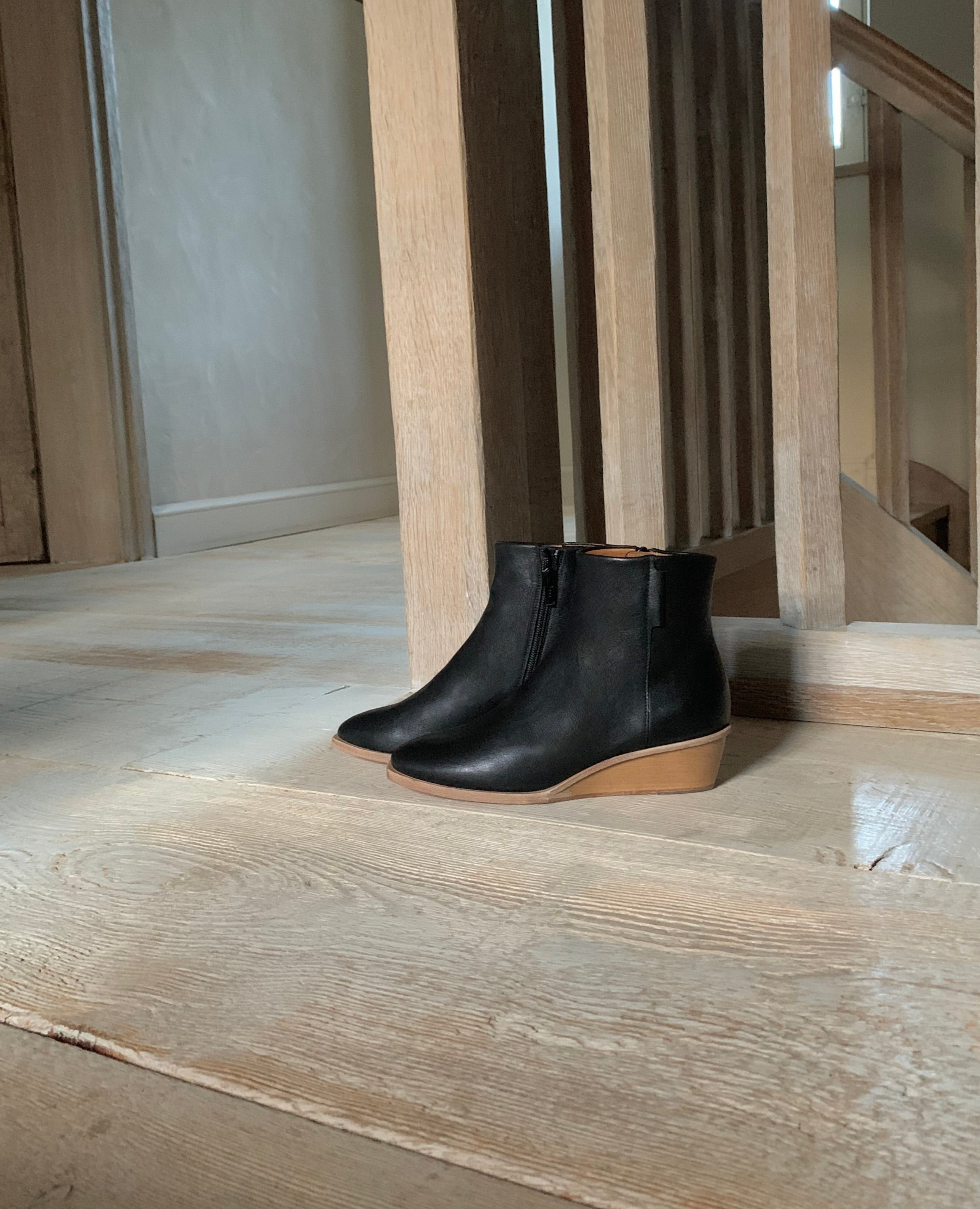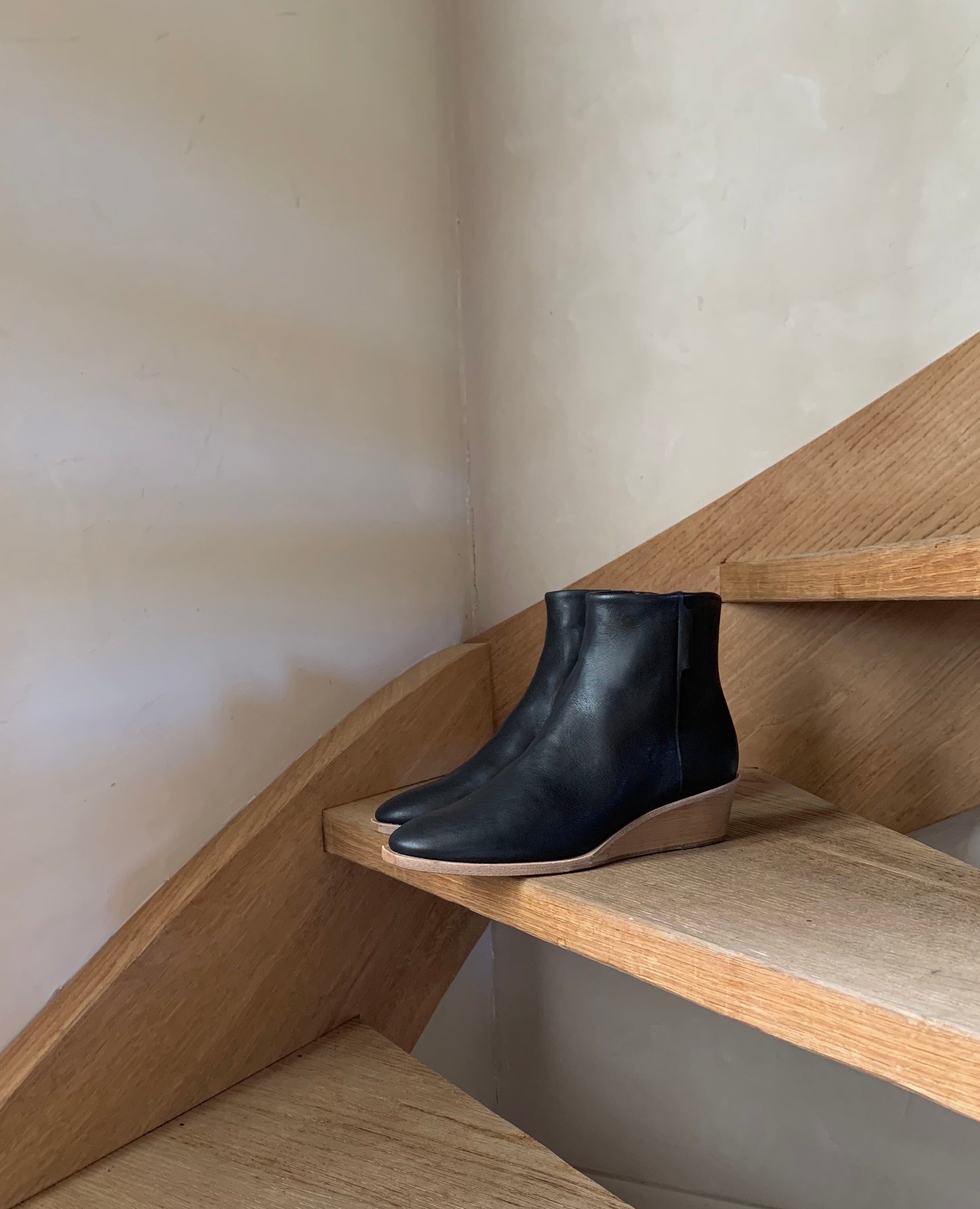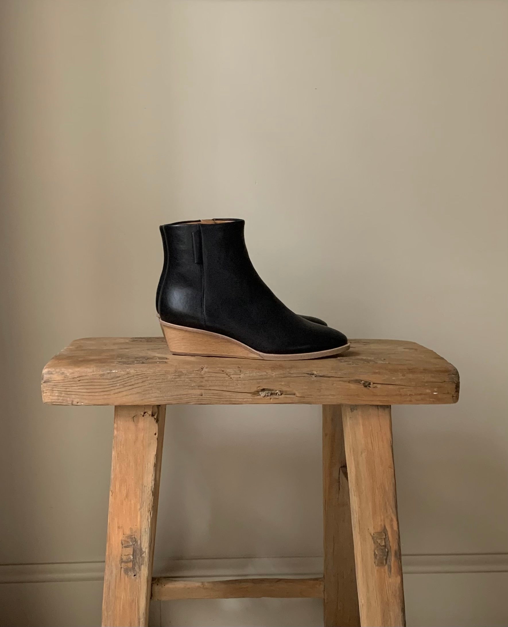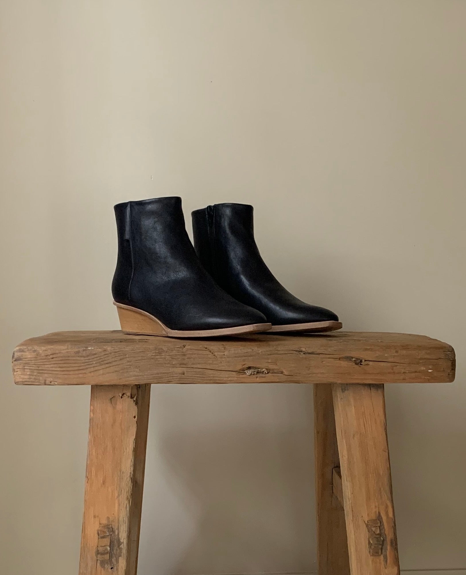 The solid wood low wedge bootie has been a Coclico classic for many years. Beloved for its wearability, this season it returns updated and refreshed for introduction to old and new fans alike. The Java boot features a slightly higher shaft and clean lines. Inside zip closure. FIT: The Java Boot runs true to size. See our size guide to find your Coclico size.
